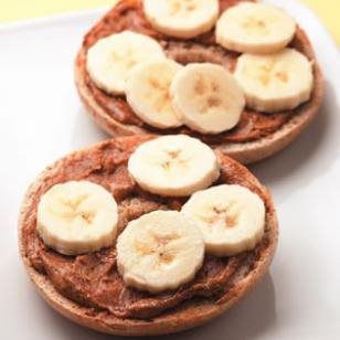 2 tablespoons natural nut butter (almond or peanut), 1 teaspoon of honey, 1 small banana , 1 whole wheat bagel.